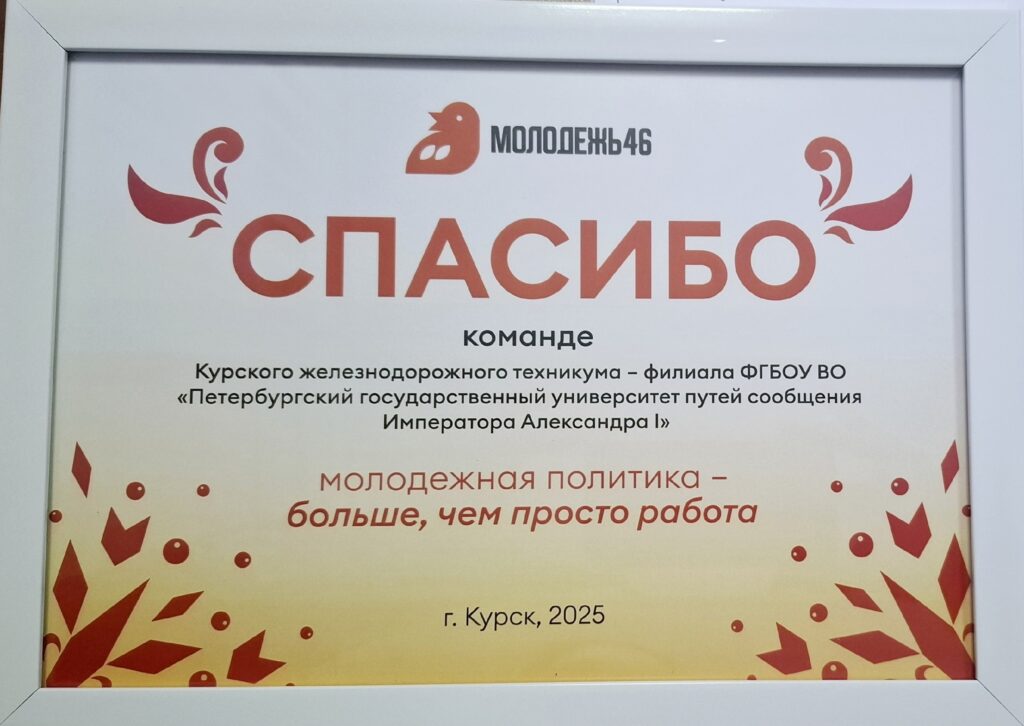 В рамках заседания состоялось награждение тех, кто внёс значительный вклад в развитие региона, в их числе команда Курского железнодорожного техникума – филиала ПГУПС.