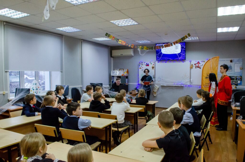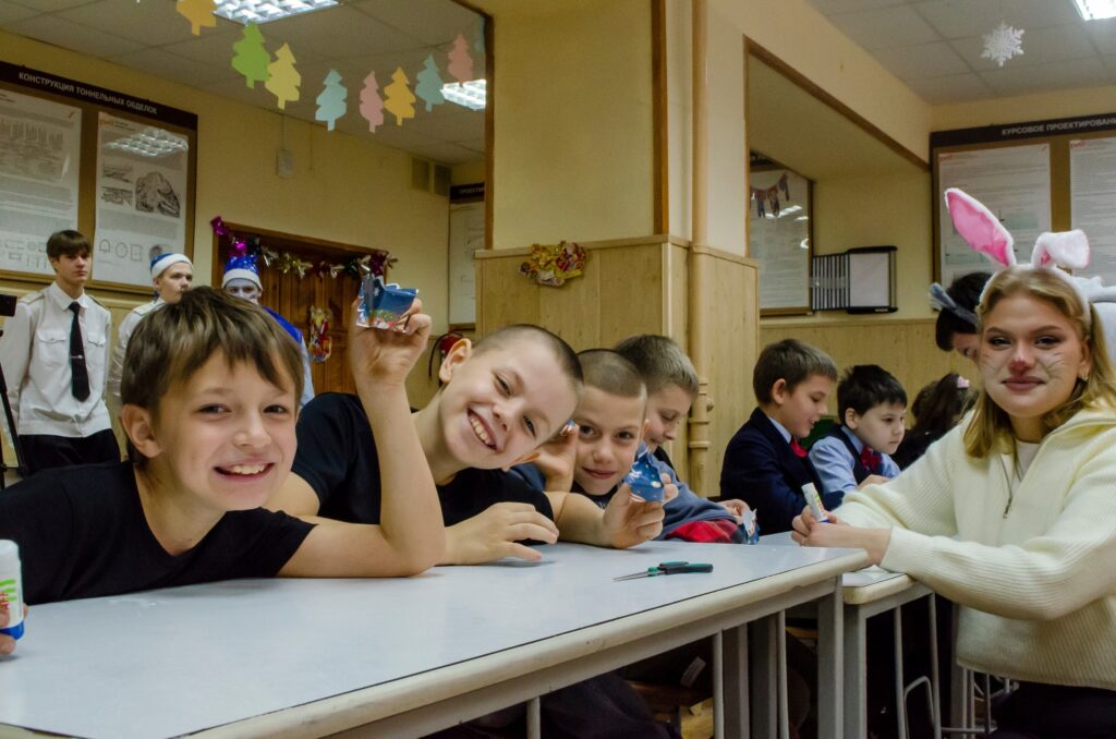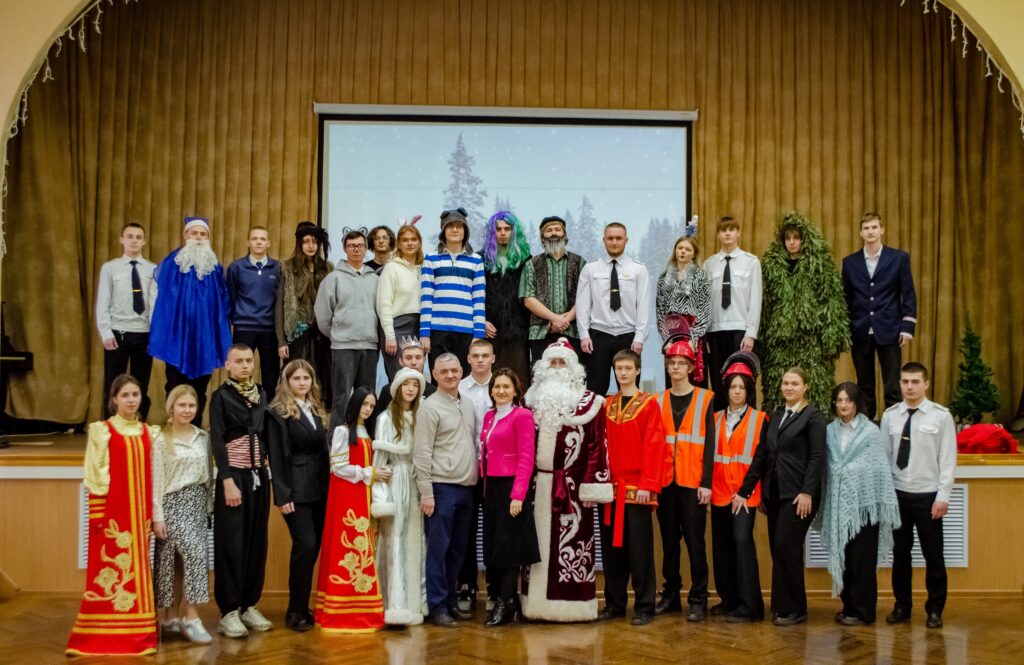 Студенты проявили себя настоящими артистами. Они перевоплотились в героев русских народных сказок: Водяного, Кощея Бессмертного, Бабы-Яги, Лешего и увлекли детей в мир веселья и чудес, неожиданных приключений и интересных конкурсов. Школьники побывали в Дремучем лесу, где обыграли злодеев в настольные игры; сразились с Бабой Ягой в ее логове, кроме того, каждый школьник смог почувствовать себя настоящим машинистом и покататься на «Поезде Деда Мороза».