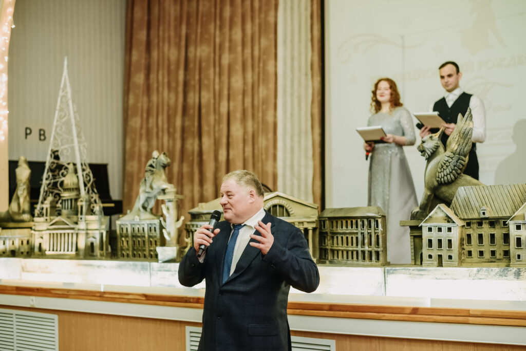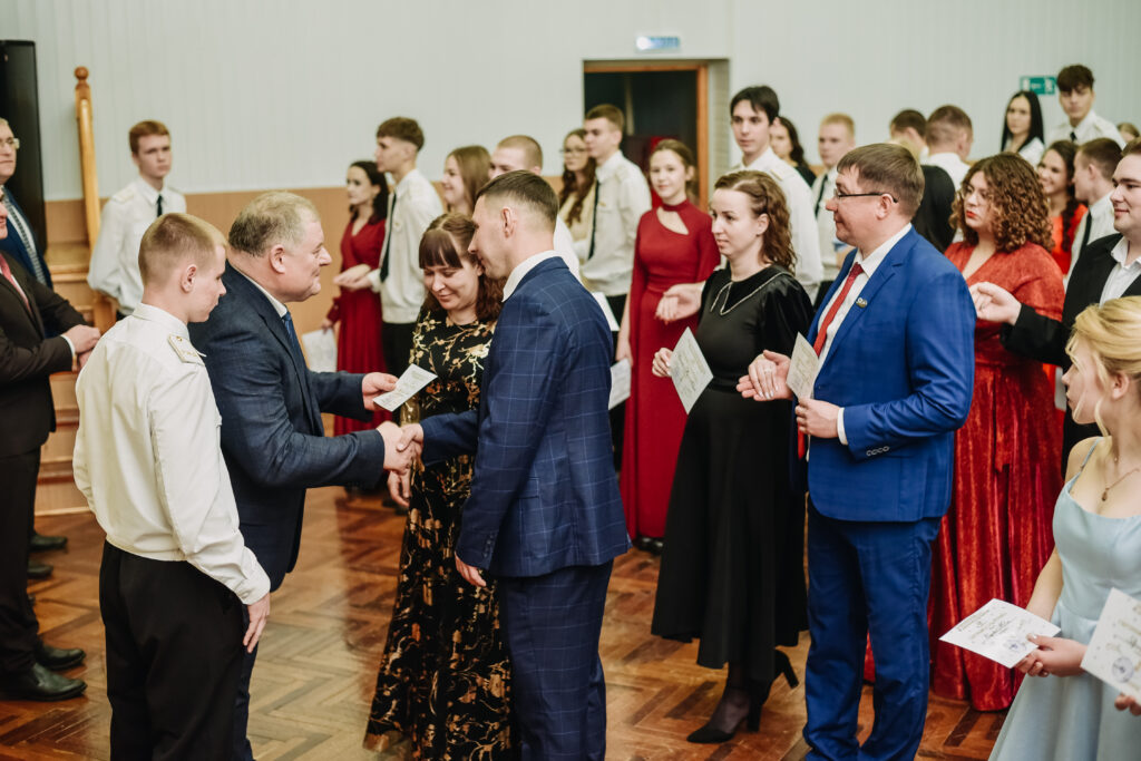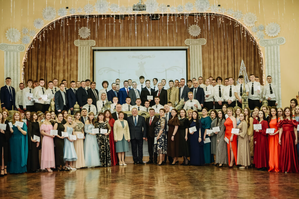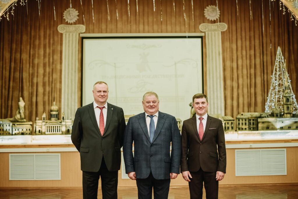 В завершении торжественного мероприятия директор техникума Владимир Алексеевич Агеев, О.С. Валинский, М.А. Греков и почетные гости вручили памятные сертификаты участникам Рождественского бала.