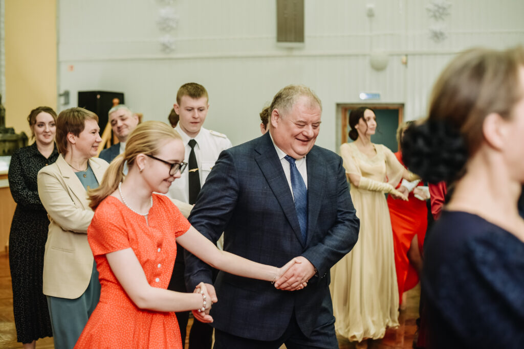 Присутствовавшие на балу с большим интересом приняли участие в танцевальных играх «Воздушные шарфы» и «Ручеек», а также бальных мастер-классах по танцам Па-де-патинёр, Па-де-труа по Фабио, Московская кадриль и Вальс-знакомство. Танцмейстером программы стала Анастасия Дмитриевна Ольховикова, выпускница техникума 2018 года, а бальные игры и мастер-классы провел художественный руководитель Студии классического бального танца «Ритурнель» Александр Валерьевич Козлов.