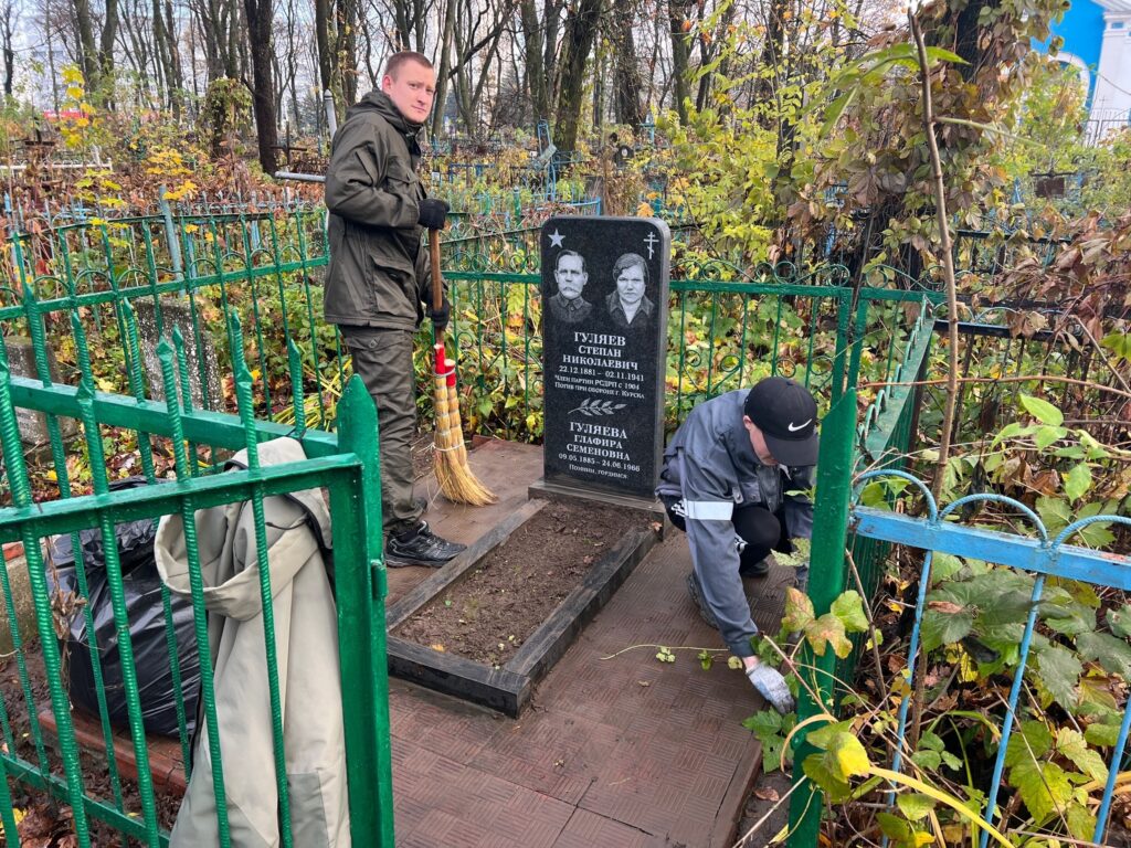 Также студенты и преподаватели активно помогали в уборке участков пожилых маломобильных людей, оказывали помощь по дому матери участника СВО, плели сети, выходили на субботники, убирали могилы Курских народных ополченцев и бойцов истребительных батальонов на Никитском кладбище.