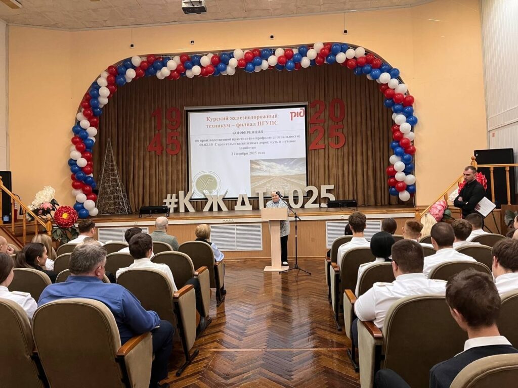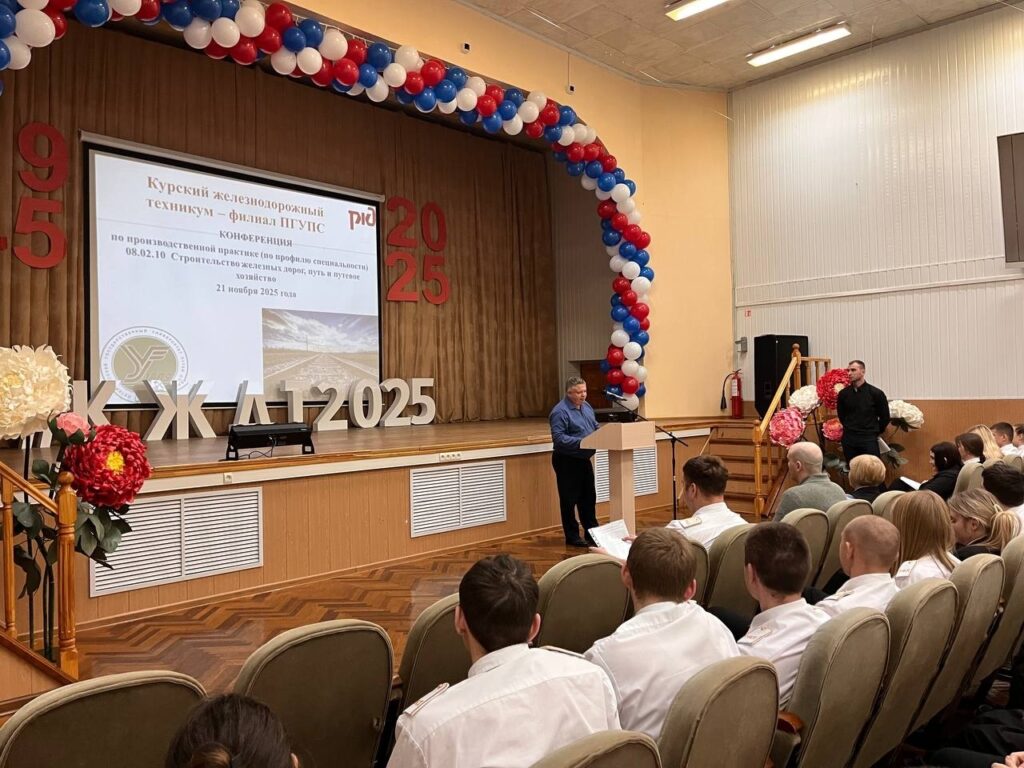 21 ноября 2025 года в актовом зале техникума состоялась конференция по итогам производственной практики (по профилю специальности) обучающихся специальности 08.02.10 Строительство железных дорог, путь и путевое хозяйство.