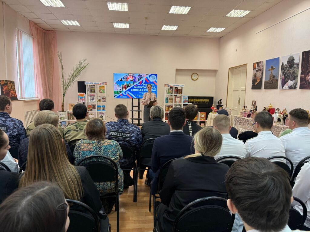 11 февраля студенты Курского железнодорожного техникума – филиала ПГУПС специальности «Строительство железных дорог, путь и путевое хозяйство» посетили Центральную городскую библиотеку им. Ф. А. Семёнова, в которой состоялся диалог культур «Россия – многоликая, единая страна!» в рамках Года единства народов России.