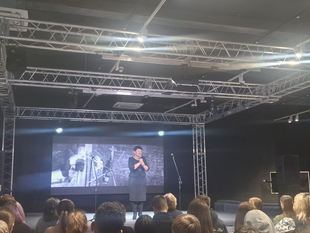 19 февраля студенты групп ТПС-212, ТПС-411 и ЭС-112 совместно с преподавателем Горбуновой О.Г. посетили мероприятие «За спиной – Родина», посвященное дате начала Специальной военной операции.
