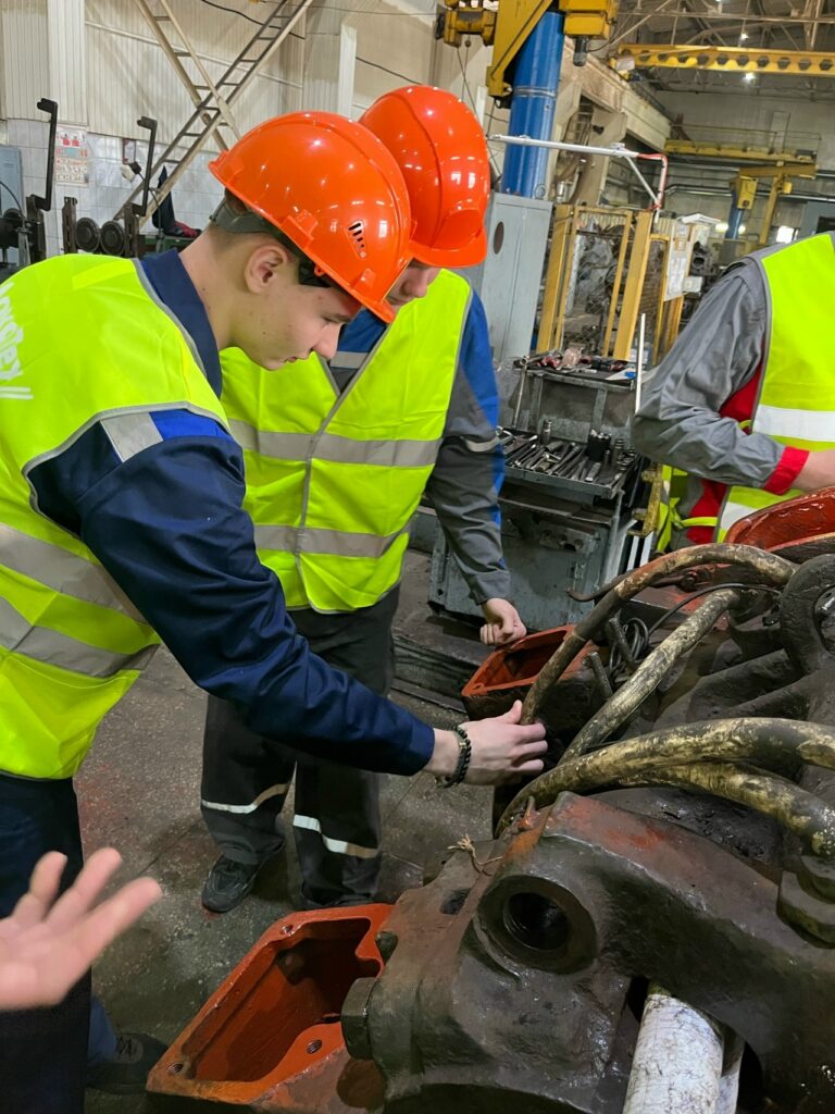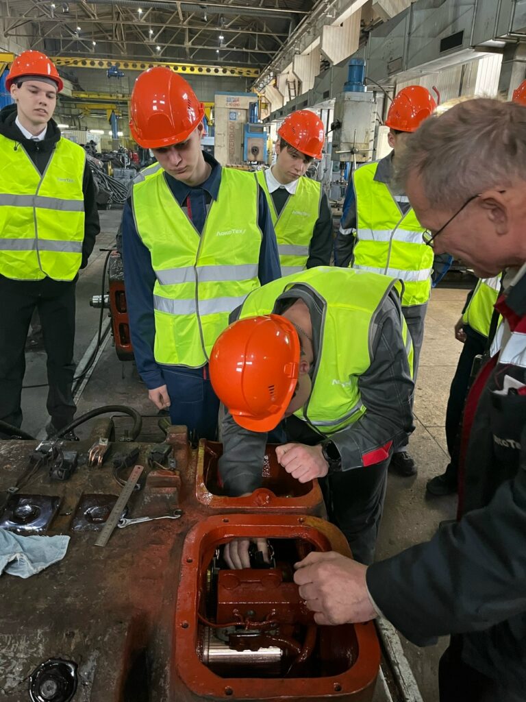 На базе электромашинного цеха локомотивного депо студенты в реальных производственных условиях проходили испытания в теоретических знаниях конструкции и принципа работы электрических машин постоянного тока, а также выполняли практические задания по оценке состояния щеточных узлов и замене щеток в тяговом электродвигателе тепловоза.
