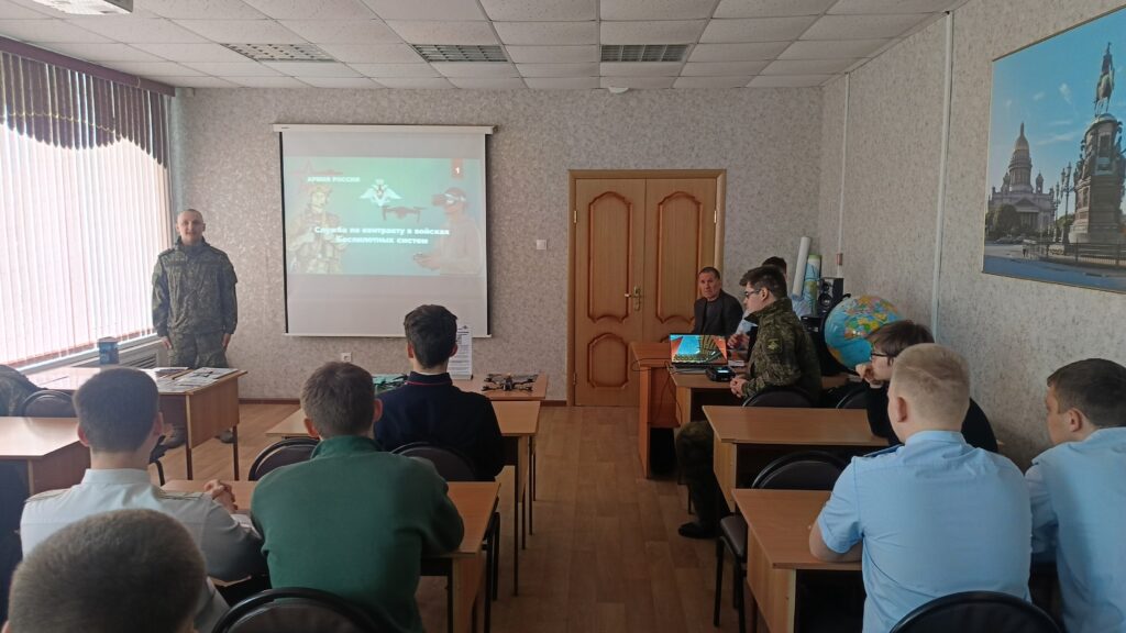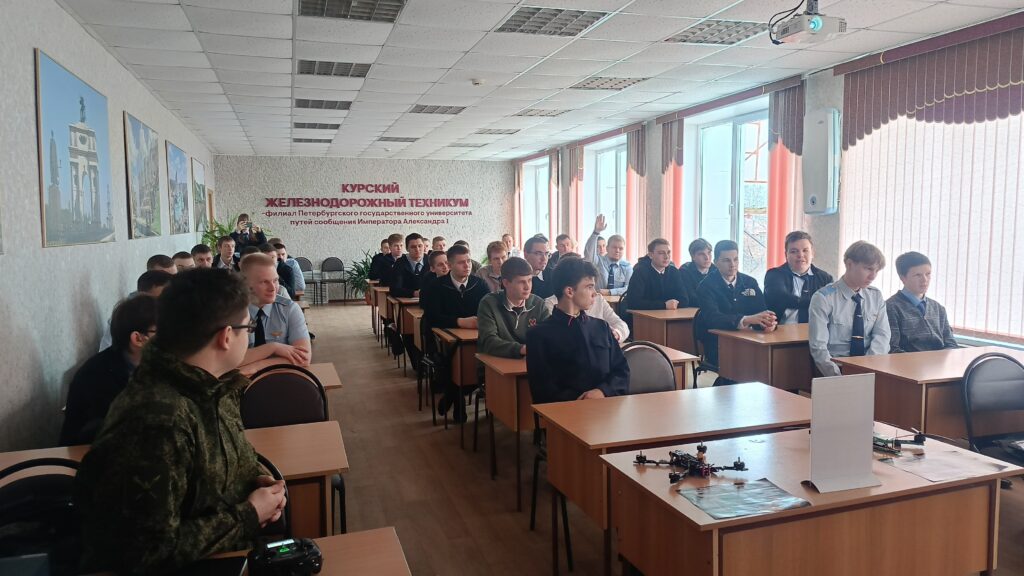 13 апреля 2026 года состоялась встреча представителя пункта отбора на военную службу по контракту г. Курска лейтенанта Соина А.С. и военнослужащего по контракту с позывным «Ястреб» воинской части войск беспилотных систем Вооруженных Сил Российской Федерации со студентами группы ТПС-313 по вопросу поступления на военную службу по контракту в войска беспилотных систем Вооруженных Сил Российской Федерации. В ходе беседы обсудили требования к кандидатам для поступления на военную службу по контракту, особое внимание обратили на социальные льготы и гарантии, предоставляемые военнослужащим по контракту в войсках беспилотных систем. Во время встречи были продемонстрированы реальные экземпляры дронов, применяемые в боевых условиях СВО, как наши, так и вражеские, а также была предоставлена возможность всем желающим на компьютерном симуляторе управлением дроном.