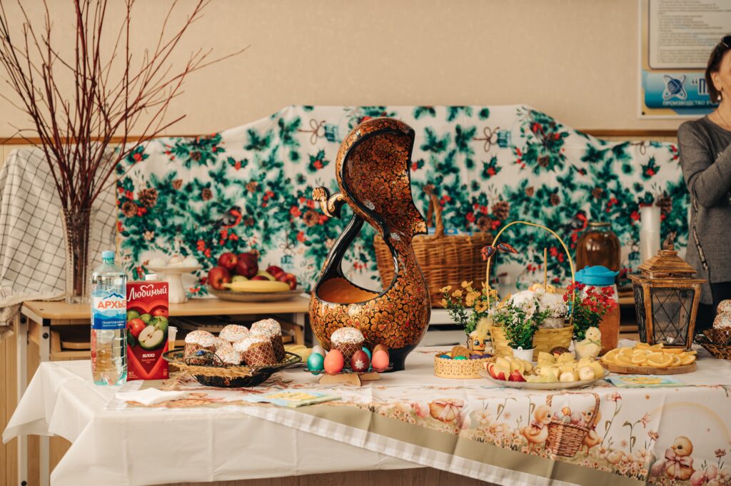 На Пасху в гости к студентам пришли директор техникума Владимир Алексеевич Агеев, администрация, преподаватели, представители родительского сообщества, а также почетные гости.