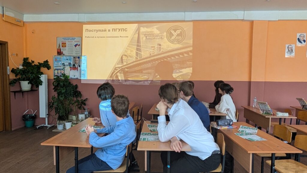 На мероприятии студенты рассказали школьникам о головном ВУЗе – Петербургском государственном университете путей сообщения Императора Александра I, раздали буклеты, показали презентации и видеоролики о ПГУПСе, его образовательных программах и студенческой жизни, правилах поведения на железной дороге – зоне повышенной опасности.