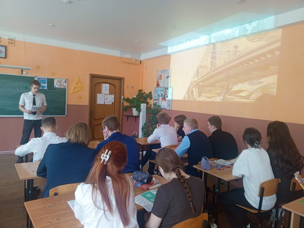 С целью оказания поддержки учащимся в процессе самоопределения и выбора сферы будущей профессиональной деятельности студенты Курского железнодорожного техникума группы ТПС-214 Алтухов Кирилл и Турецкий Владислав провели профориентационное мероприятие в МБОУ «Средняя общеобразовательная школа № 49» г. Курска. На беседе присутствовали учащиеся 11 класса.